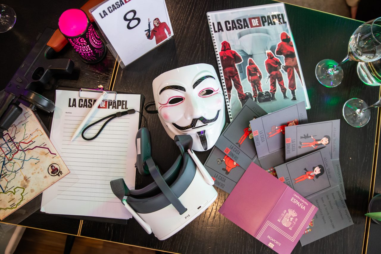 Elke ronde doet een ander teamlid de VR-bril op zijn of haar hoofd. Het is essentieel dat u en uw teamgenoten goed communiceren, want alleen zo kunnen jullie de opdrachten tot een goed einde brengen. Jullie beginnen het spel in het klaslokaal waar jullie getest worden als onverschrokken bankrovers. Als jullie hiervoor slagen worden jullie meegenomen naar het Muntgebouw en gaan jullie proberen de roof te plegen. De kluis kraken is al lastig zat, maar de stad verlaten zal nog wat meer teamwork vergen. Wie houdt het hoofd koel?